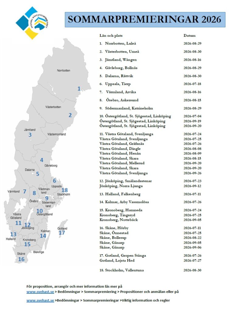 Nu finns datum, platser och premieringsförättare för årets sommarpremieringar upplagt på hemsidan! https://svehast.se/bedomningar/sommarpremiering/